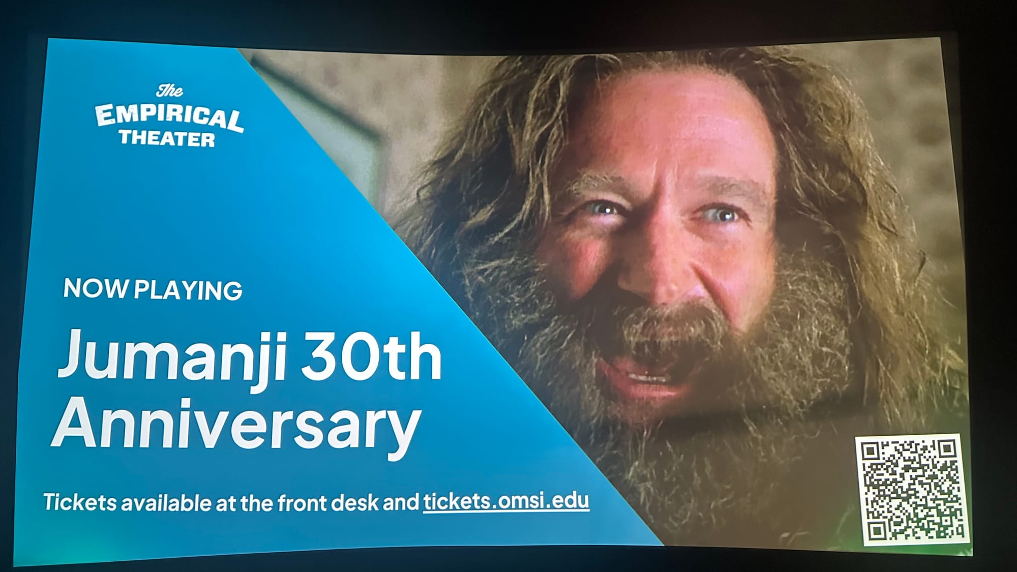 We ended up watching the 30th Anniversary showing of Jumanji on the really big screen. I probably hadn't seen it in a few decades. The graphics were cornier than I remembered, but it was still nice to see a show I didn't have to think too much about. I think my son had a good time as well.