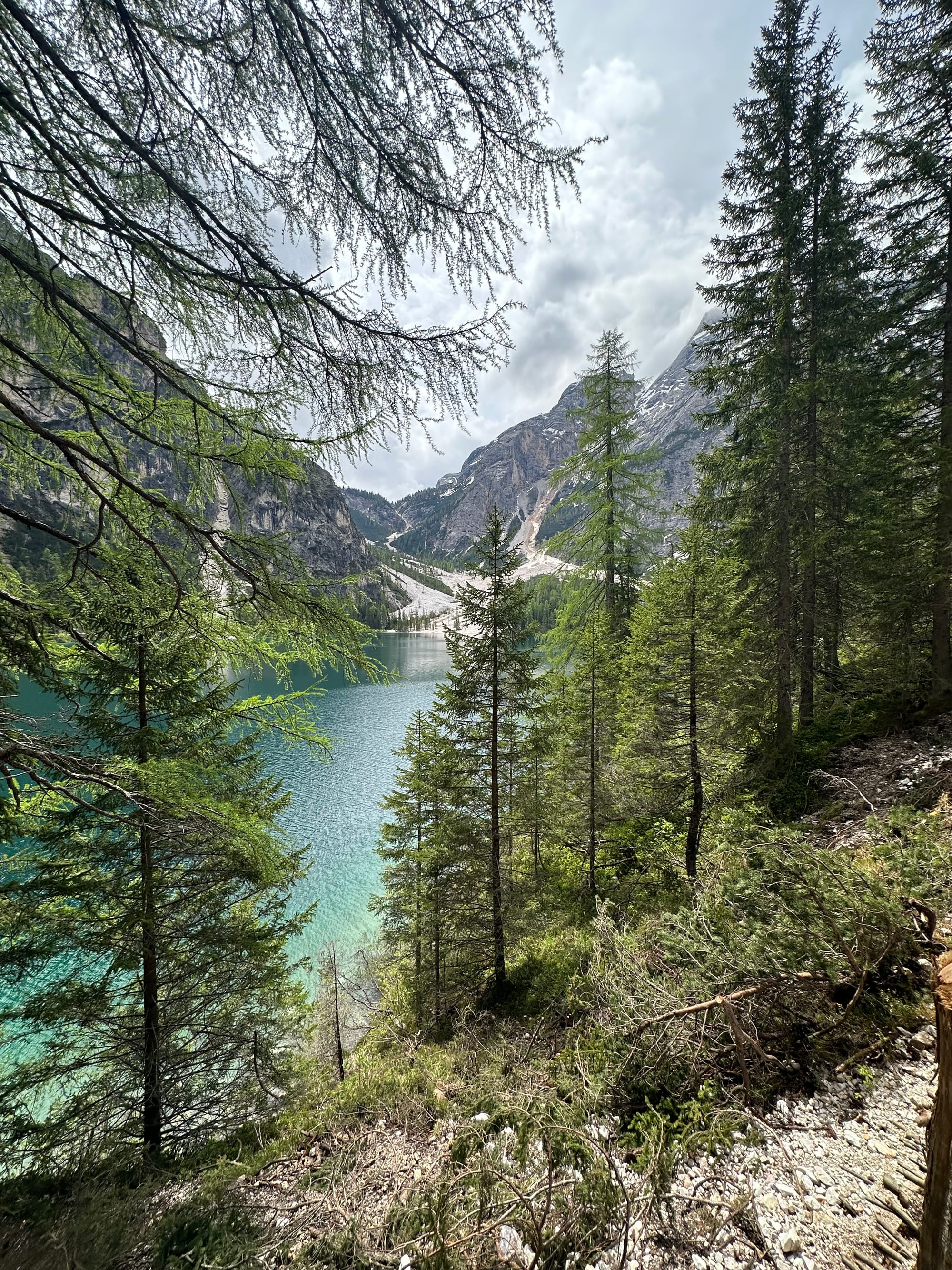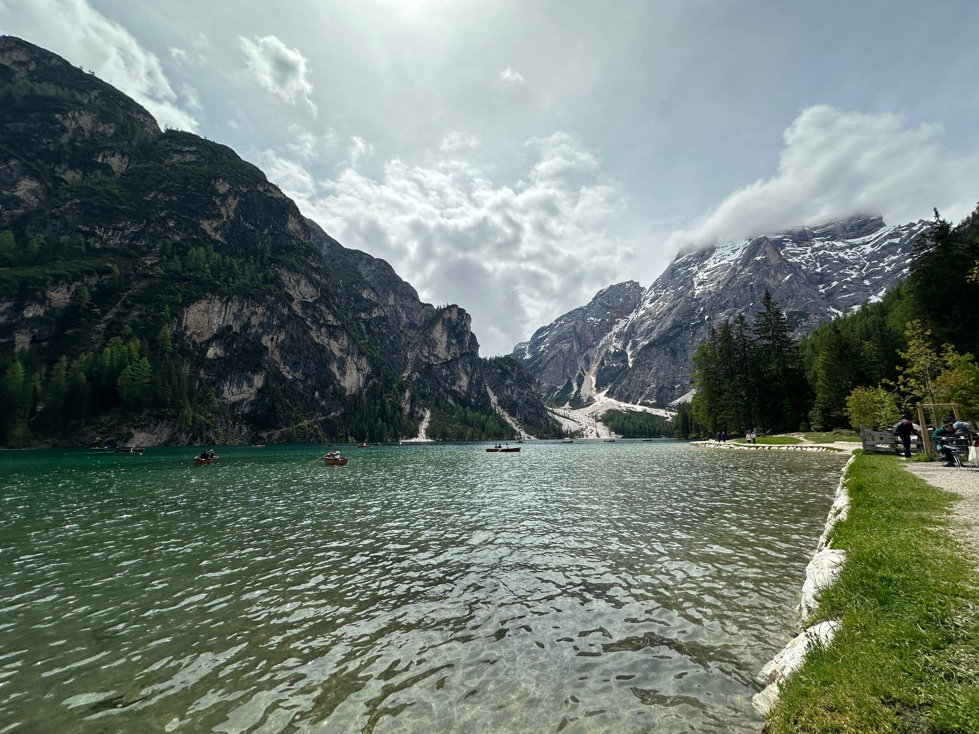 Late snow kept us from some of the higher hikes, but we made the best of it. Lago di Braies was a highlight. The drive was a bit long but idillic, with a calm, green lake ringed by mountains that greeted us upon arrival. This was the busiest place we visited in the Dolomites, likely with higher than usual traffic due to the other locations being inaccessible. We hiked the circle on foot, taking photos and pausing just to take it in.