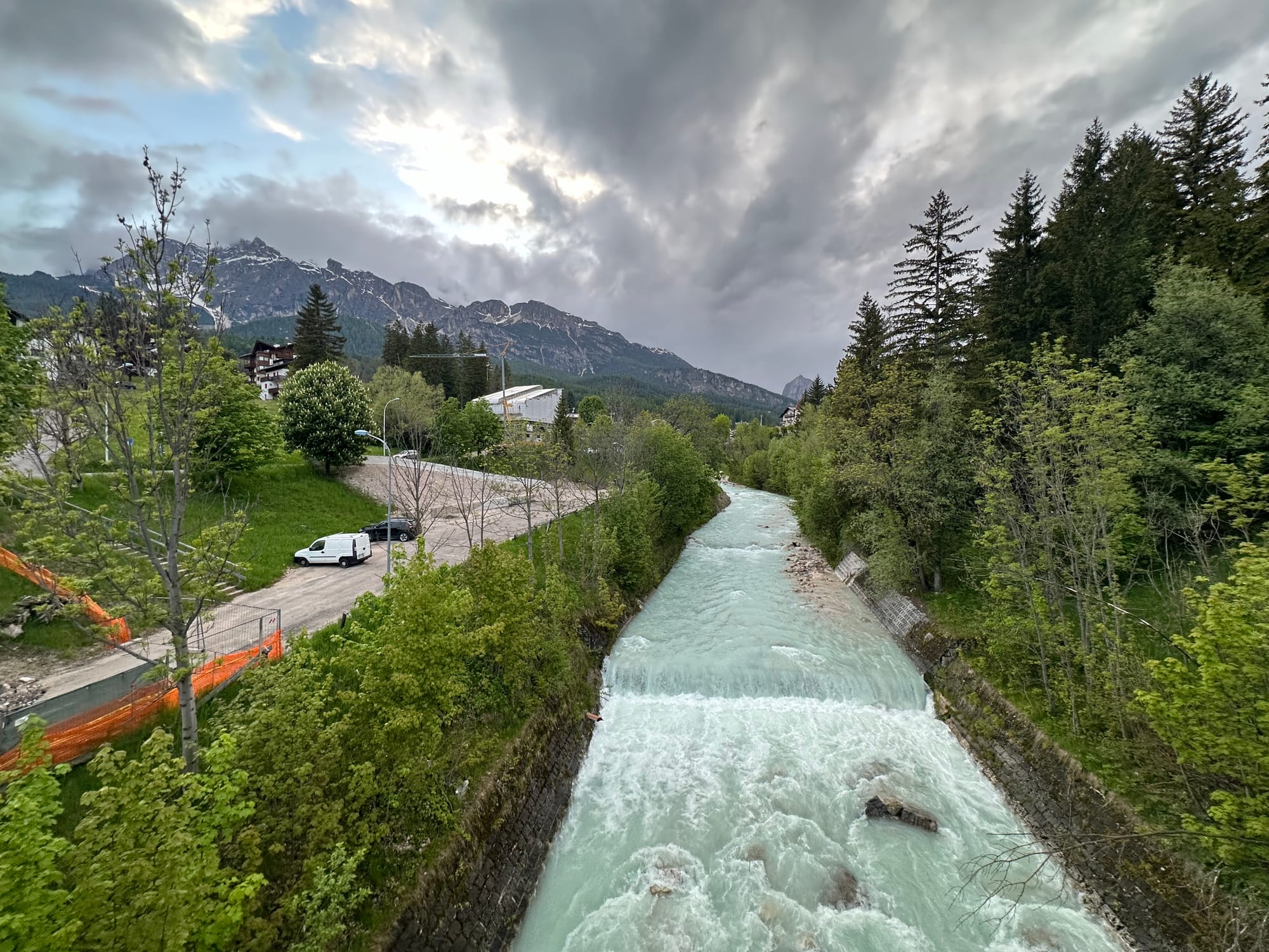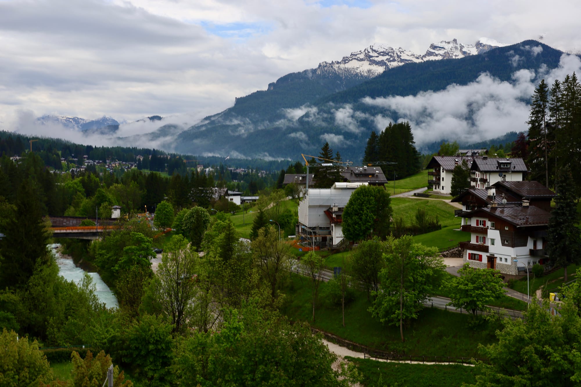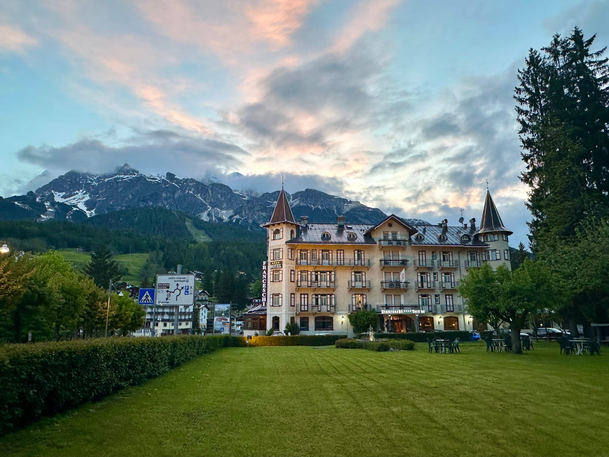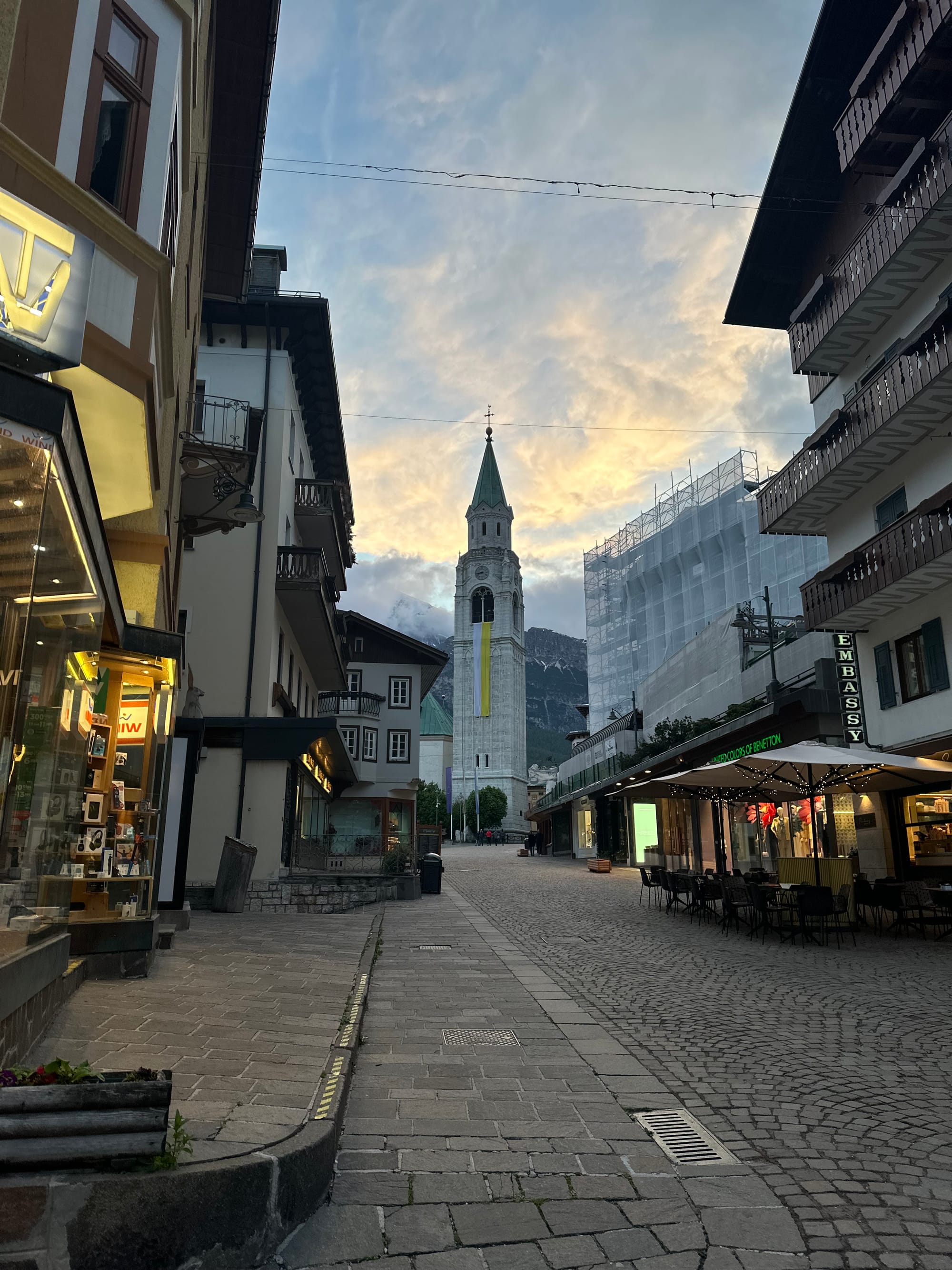 Cortina itself was pleasant to walk in. In the evenings I explored while my wife rested, noticing the local schools, churches, and public spaces tucked among the boutiques. As a co-host of the next Winter Olympics, I noticed signs of change as hotels readied for guests and large cranes dotted the edge of town.