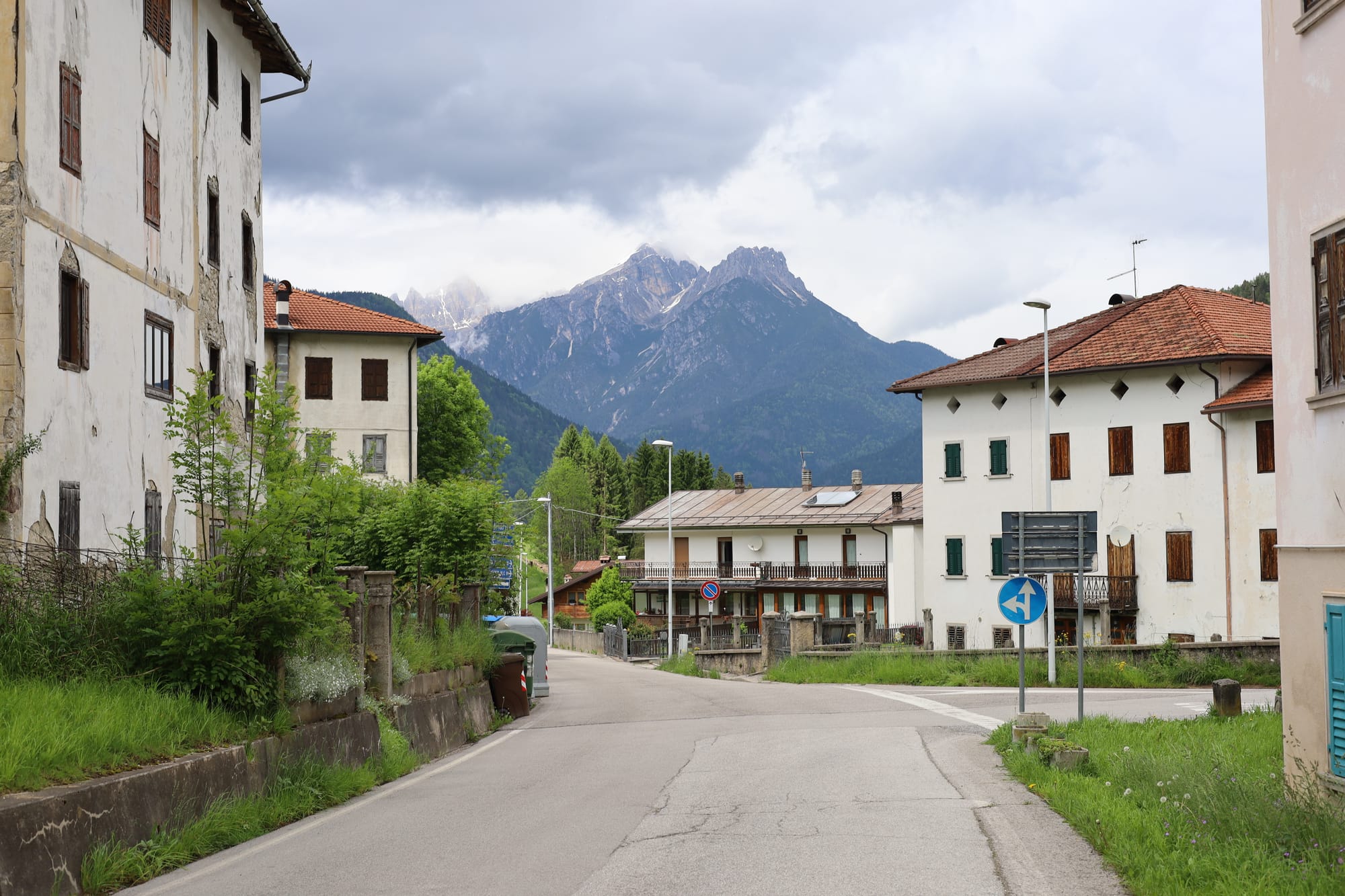 Cadore felt different from the Italy most travelers picture. The architecture leans alpine with its wooden chalets and steep roofs, deep balconies, and neatly stacked firewood. The language shifts between Italian and Ladin, a regional dialect still spoken there. We arrived between seasons, after skiing but before the summer hikers arrived in droves, so the towns were pretty quiet.
